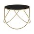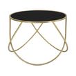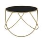 Informations Techniques : Dimensions : L. 60 x l. 60 x H. 45 cm Matières : Métal, Verre & MDF Spécificités : Pratique & Design Table basse ronde Plateau en verre Design anneaux croisés Poids : 4,5 kg Couleur : Noir & Or