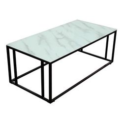 Informations Techniques : Dimensions : L. 120 x l. 60 x H. 45 cm Plateau : H. 2 cm Matières : Verre, MDF & Acier Spécificités : Moderne & Élégante Table basse rectangulaire Design effet marbre Revêtement en poudre Nombre de colis : 1 Poids max supporté : 40 kg Poids : 15 kg Couleur : Blanc & Noir