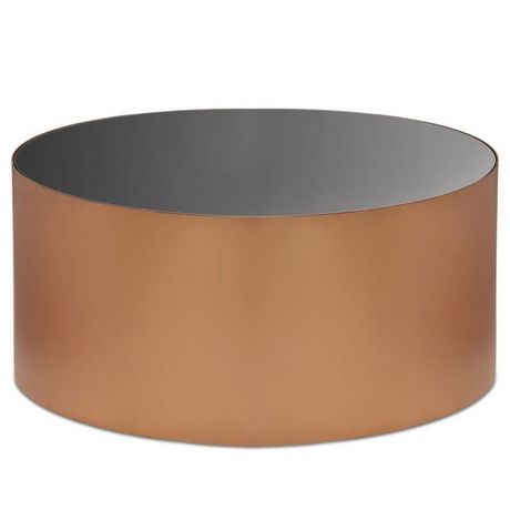 Informations Techniques : Dimensions : D. 88,9 x H. 40,6 cm Matières : Métal & Verre Spécificités : Tendance & Moderne Table Basse Forme Ronde Montage facile sans outils Livré monté Nombre de colis : 1 Poids : 26 kg Couleur : Cuivre & Noir