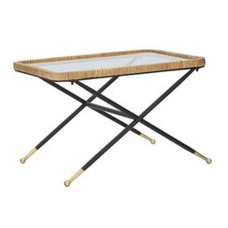 Informations Techniques : Dimensions : L. 70 x l. 50 x H. 45 cm Verre : L. 65 x l. 45 cm Matières : Plateau : Verre & Rotin Piètement : Métal Spécificités : Pratique & Design Table basse rectangulaire Plateau en verre transparent Bord en rotin Piètement finition dorée À monter soi-même Poids : 6 kg