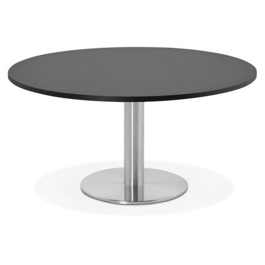Informations Techniques : Dimensions : D. 90 x H. 45 cm Matières : Bois aggloméré & Acier brossé Spécificités : Epaisseur de la tablette : 1,8 cm Diamètre de la base : 40 cm Livré démonté Poids : 25 kg Nombre de colis : 3 Couleur : Noir