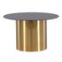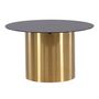 Informations Techniques : Dimensions : D. 80 x H. 46 cm Plateau : H. 0,6 cm Matières : Verre & Acier Spécificités : Chic & Design Table basse ronde Plateau en verre Revêtement laiton brossé Nombre de colis : 2 Poids max supporté : 15 kg Poids : 12,28 kg Couleur : Or & Noir