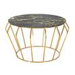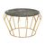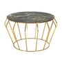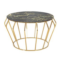 Informations Techniques : Dimensions : L. 78 x l. 78 x H. 44,5 cm Matières : Plateau : Verre Piètement : Métal Spécificités : Pratique & Design Table basse ronde Plateau en verre effet marbre Poids : 6,3 kg Couleur : Noir & Or