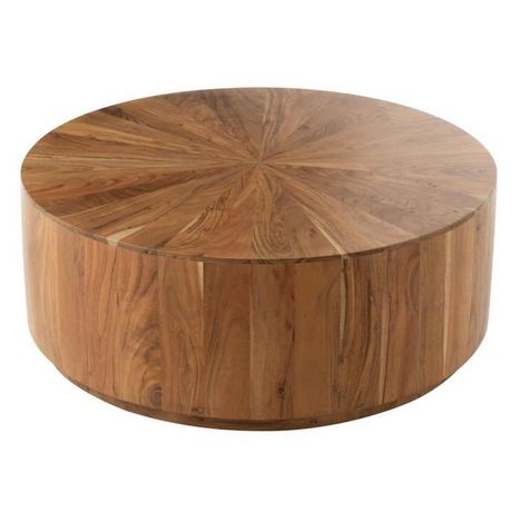 Informations Techniques : Dimensions : D. 90 x H. 35 cm Matières : 60% Bois (Acacia) & 40% MDF Spécificités : Naturelle & Robuste Table basse ronde À monter soi-même Poids max supporté : 75 kg Poids : 27,5 kg Couleur : Naturel
