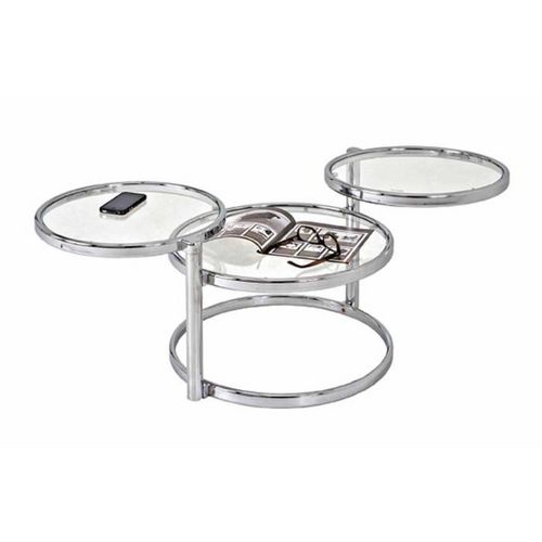 Informations Techniques : Dimensions : L. 58-140 x l. 50 x H. 43 cm Matières : Acier & Verre Spécificités : Moderne & Tendance Table d'Appoint Design Contient 3 Plateaux (2 Plateaux Pivotants) Plateau en Verre trempé Structure en Acier chromé Livré Démonté Facile d'Entretien & d'Utilisation Poids :