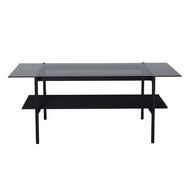 Informations Techniques : Dimensions : L. 120 x l. 60 x H. 48 cm Plateau : H. 0,6 cm Matières : Verre & Acier Spécificités : Élégante & Moderne Table basse rectangulaire Avec étagère Plateau en verre Revêtement en poudre noire rugueuse Nombre de colis : 2 Poids max supporté : 50 kg Poids : 17,9 kg C