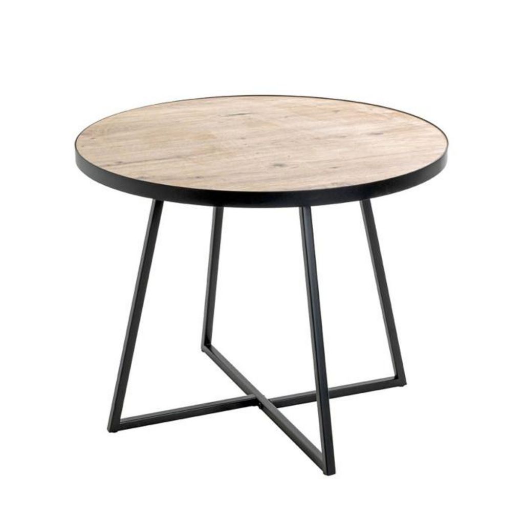Informations Techniques : Dimensions : D. 60 x H. 48 cm Matières : Structure : Métal Plateau : MDF Spécificités : Pratique & Déco Décor chêne Finition laquée Forme ronde Poids : 4,21 kg Couleur : Chêne & Noir