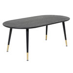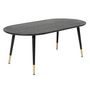 Informations Techniques : Dimensions : L. 120 x l. 60 x H. 47 cm Plateau : H. 1,8 cm Matières : Plateau : MDF & Placage Piètement : Acier Spécificités : Élégante & Design Table basse ovale Revêtement en poudre Nombre de colis : 2 Poids max supporté : 50 kg Poids : 10,8 kg Couleur : Noir