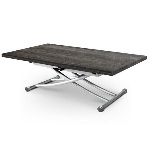 Informations Techniques : Dimensions : Dimensions Table Basse : L. 150 x P. 120 x H. 39-76,3 cm Matière : Bois, Inox & MDF Spécificités : Table basse relevable Réhaussable grâce à une simple poignée & un système à roulettes sur 4 pieds Pieds en métal robustes Design contemporain Livré démonté avec n