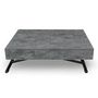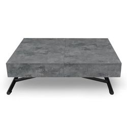 Informations Techniques : Dimensions : L. 120-155-190 x l. 80 x H. 40-75 cm Matières : MDF & Métal Spécificités : Design & Elegant Table basse relevable Plateau extensible Jusqu'à 8 couverts À monter soi-même Nombre de colis : 2 Poids : 50,8 kg Couleur : Béton