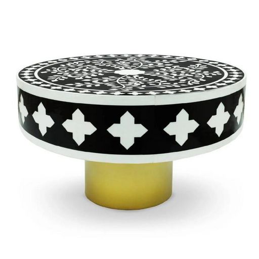 Table Basse Ronde Croix 71cm Noir & Blanc