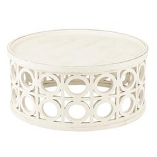 Informations Techniques : Dimensions : D. 78 x H. 40 cm Matières : 80% MDF & 20% Bois (Sapin) Spécificités : Pratique & Utile Table basse ronde Design sculpté Poids max supporté : 15 kg Poids : 10 kg Couleur : Blanc
