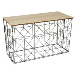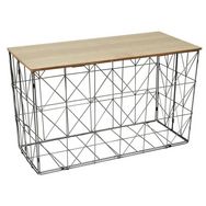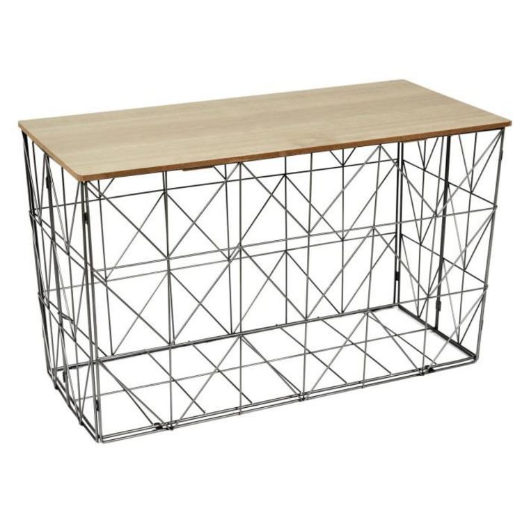 Table Coffre Pliable Filaire 80cm Gris & Naturel