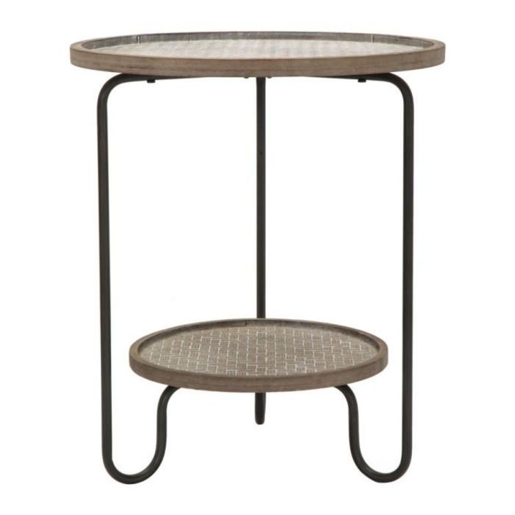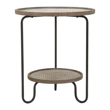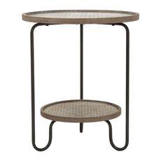Informations Techniques : Dimensions : L. 48 x l. 48 x H. 54,5 cm Piètement : H. 13,5 cm Matières : Métal & MDF Spécificités : Pratique & Utile Table d'appoint ronde Avec une étagère Plateau effet tressé Poids : 3,65 kg Couleur : Naturel & Noir