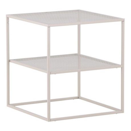 Informations Techniques : Dimensions : L. 55 x l. 55 x H. 60 cm Plateau : H. 1,5 cm Matière : Acier Spécificités : Moderne & Pratique Table d'appoint carré Design ajouré Avec étagère Revêtement en poudre de résine époxy Nombre de colis : 1 Poids max supporté : 10 kg Poids : 5 kg Couleur : Beige