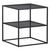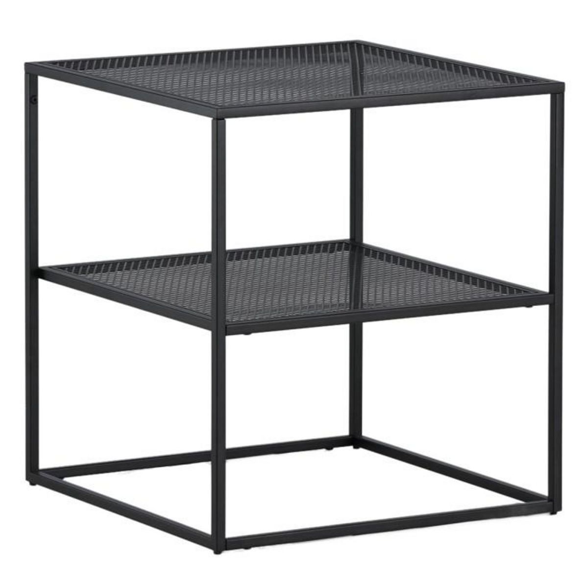 Informations Techniques : Dimensions : L. 55 x l. 55 x H. 60 cm Plateau : H. 1,5 cm Matière : Acier Spécificités : Moderne & Pratique Table d'appoint carré Design ajouré Avec étagère Revêtement en poudre de résine époxy Nombre de colis : 1 Poids max supporté : 10 kg Poids : 5 kg Couleur : Noir