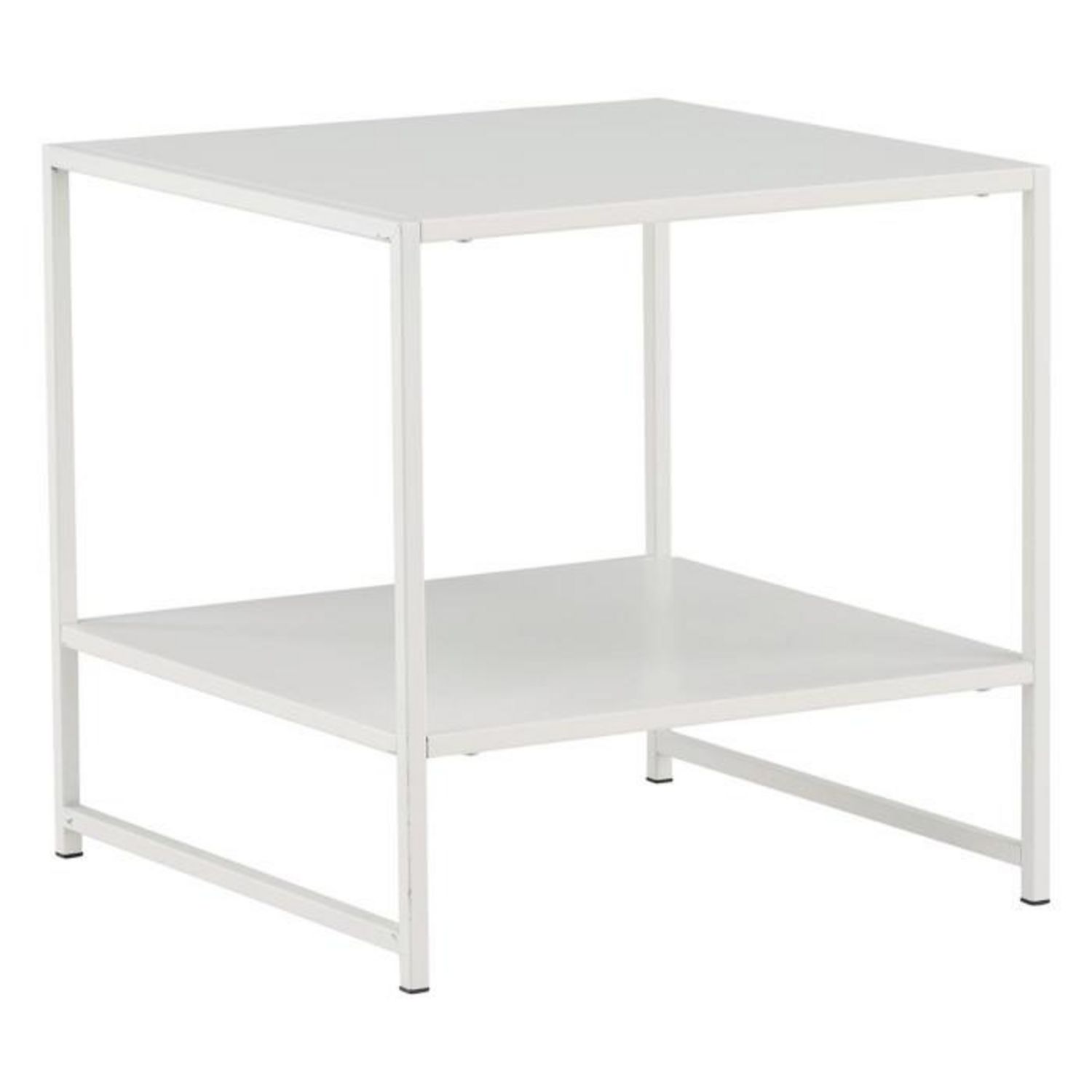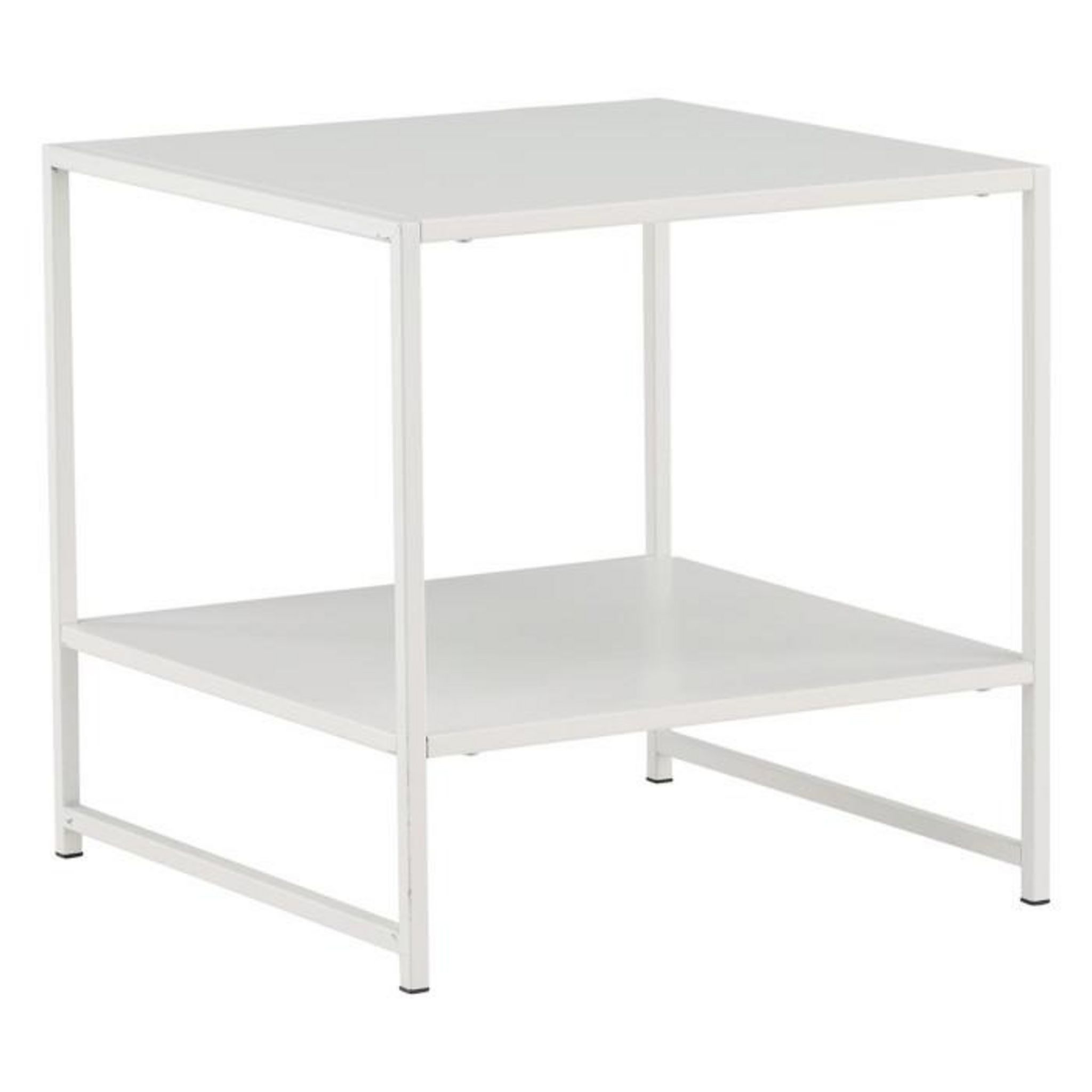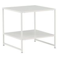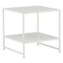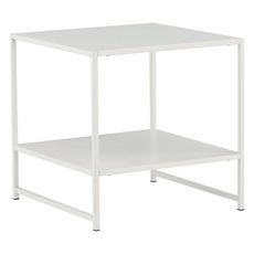 Informations Techniques : Dimensions : L. 50 x l. 50 x H. 50 cm Matière : Acier Spécificités : Moderne & Pratique Table d'appoint carrée Avec étagère Revêtement en poudre Nombre de colis : 1 Poids max supporté : 10 kg Poids : 4,5 kg Couleur : Blanc