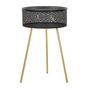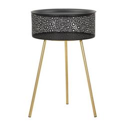 Informations Techniques : Dimensions : L. 40 x l. 40 x H. 65 cm Panier : D. 38 x H. 15 cm Matière : Métal Spécificités : Pratique & Utile Table d'appoint ronde Avec panier de rangement Design ajouré Piètement à assembler soi-même Poids : 3 kg Couleur : Noir & Or