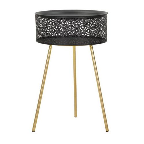 Table d'Appoint Avec Rangement Blacky 65cm Noir & Or