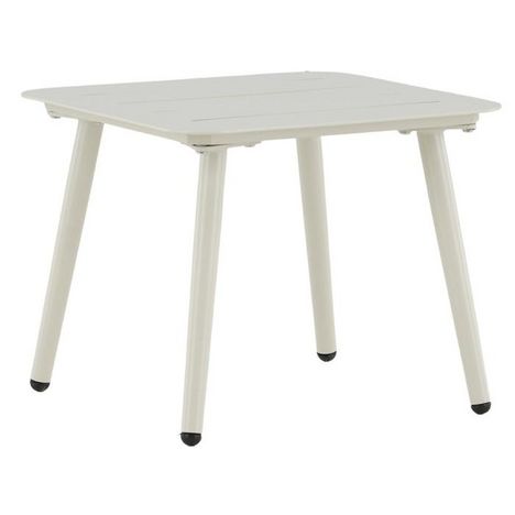 Informations Techniques : Dimensions : L. 40 x l. 40 x H. 33 cm Plateau : H. 1 cm Matière : Aluminium Spécificités : Élégante & Moderne Table d'appoint d'extérieur Forme carrée Poids max supporté : 80 kg Poids : 2,5 kg Couleur : Beige
