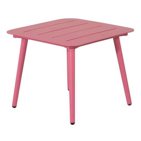 Informations Techniques : Dimensions : L. 40 x l. 40 x H. 33 cm Plateau : H. 2 cm Matière : Aluminium Spécificités : Élégante & Moderne Table d'appoint d'extérieur Forme carrée Poids max supporté : 120 kg Poids : 2,2 kg Couleur : Rose