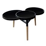 Informations Techniques : Dimensions : L. 86,5 x l. 71 x H. 50 cm Matières : MDF avec revêtement haute brillance, Bambou & Métal Spécificités : Pratique & Tendance Table d'Appoint Déco Combinaison de 3 Plateaux Surface Lisse avec Rebord Armature en Métal Pieds Stables en Bambou Facile à Nettoyer Cap