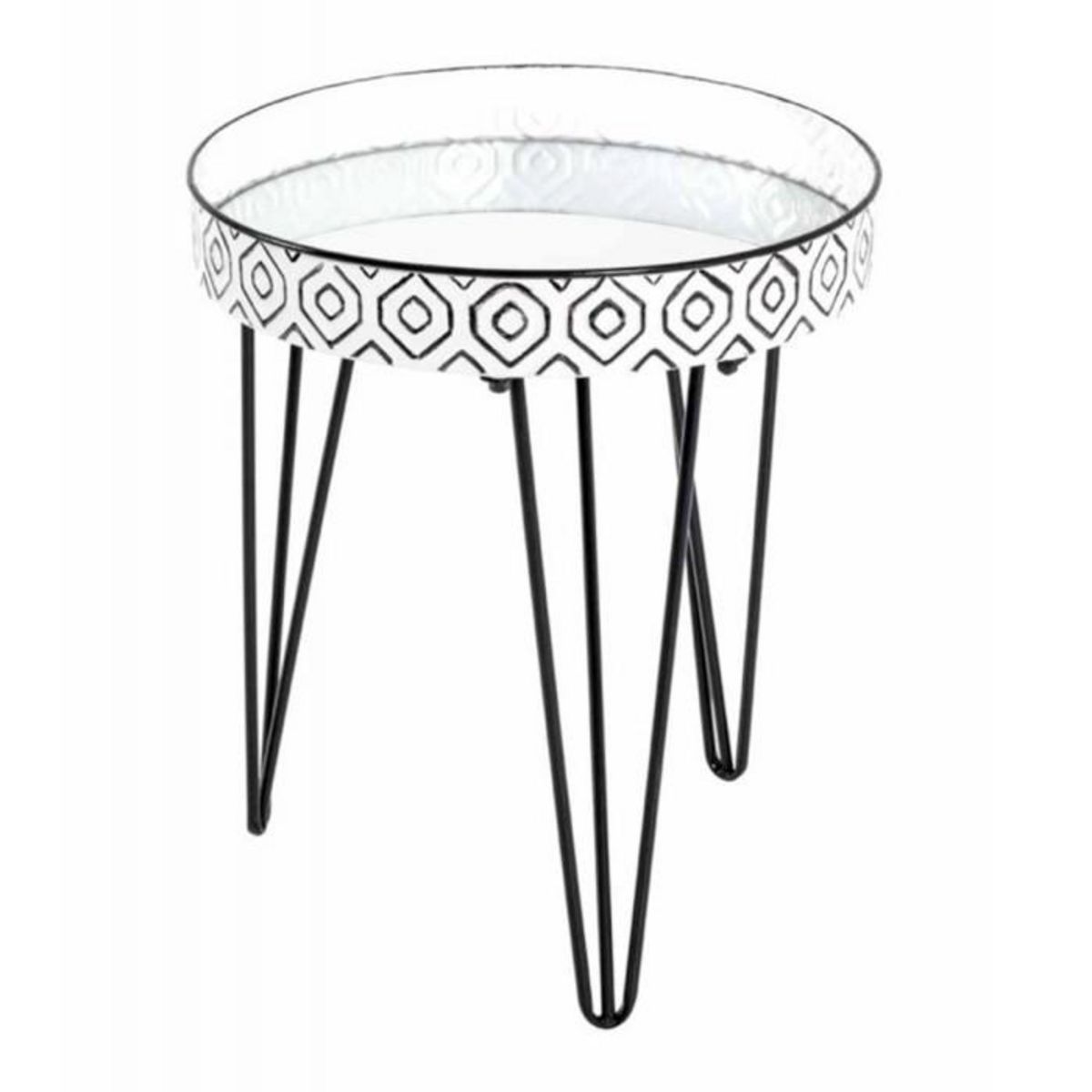 Informations Techniques : Dimensions : D. 39 x H. 46 cm Matières : Acier, Métal & Verre Spécificités : Moderne & Tendance Table d'Appoint Design Avec Miroir Livré Démonté Facile d'Entretien & d'Utilisation A Motifs Poids : 3,15 kg Couleur : Noir & Blanc