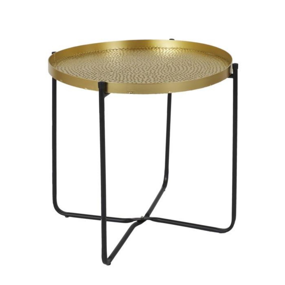 Informations Techniques : Dimensions : D. 50 x H. 45 cm Matière : Métal Spécificités : Pratique & Utile Table d'appoint design Métal martelé Forme ronde A monter soi-même (5 minutes) Poids : 1,5 kg Couleur : Or