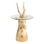 Informations Techniques : Dimensions : D. 48,5 x H. 83 cm Matières : 80% Résine & 20% Verre Spécificités : Chic & Utile Table d'appoint déco Design antilope Plateau en verre rond À monter soi-même Poids max supporté : 20 kg Poids : 8,5 kg Couleur : Or