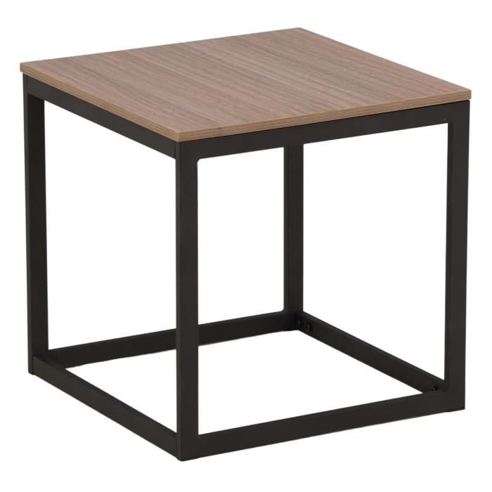 Informations Techniques : Dimensions : L. 50 x l. 50 x H. 50 cm Plateau : H. 1,5 cm Matières : Plateau : MDF Piètement : Acier Spécificités : Moderne & Pratique Table d'appoint carrée Revêtement en poudre noire Poids max supporté : 20 kg Poids : 6,6 kg Couleur : Marron & Noir