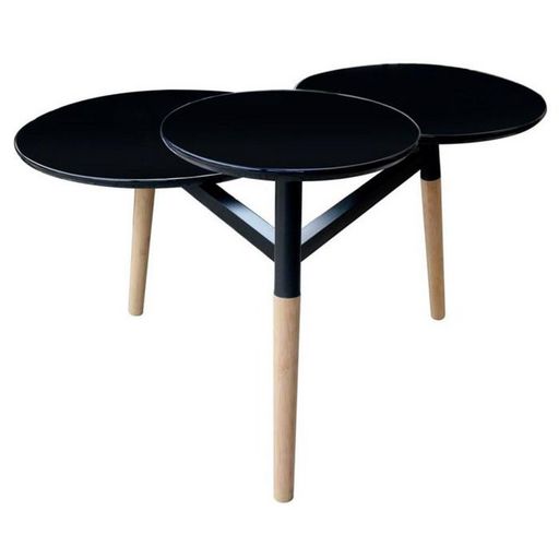 Informations Techniques : Dimensions : L. 86,5 x l. 71 x H. 49,5 cm Matières : MDF avec revêtement haute brillance, Bambou & Métal Spécificités : Pratique & Tendance Table d'Appoint Design Combinaison de 3 Plateaux Surface Lisse Armature en Métal Pieds Stables en Bambou Facile à Nettoyer Capacité de