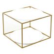 Informations Techniques : Dimensions : L. 50 x l. 50 x H. 36 cm Épaisseur du Plateau : 5 mm Matière : Métal, Fer & Verre Spécificités : Tendance & Moderne Table d'Appoint design Forme Cube 2 Niveaux Structure en Métal Capacité de Charge Maximale : 15 kg A Monter Soi-Même Facile d'Entretien & d'Utili