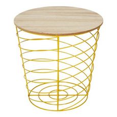 Informations Techniques : Dimensions : D. 40,5 cm Matières : Bois, Métal & MDF Spécificités : Pratique & Utile Table d'Appoint design Forme Ronde Couleur : Jaune