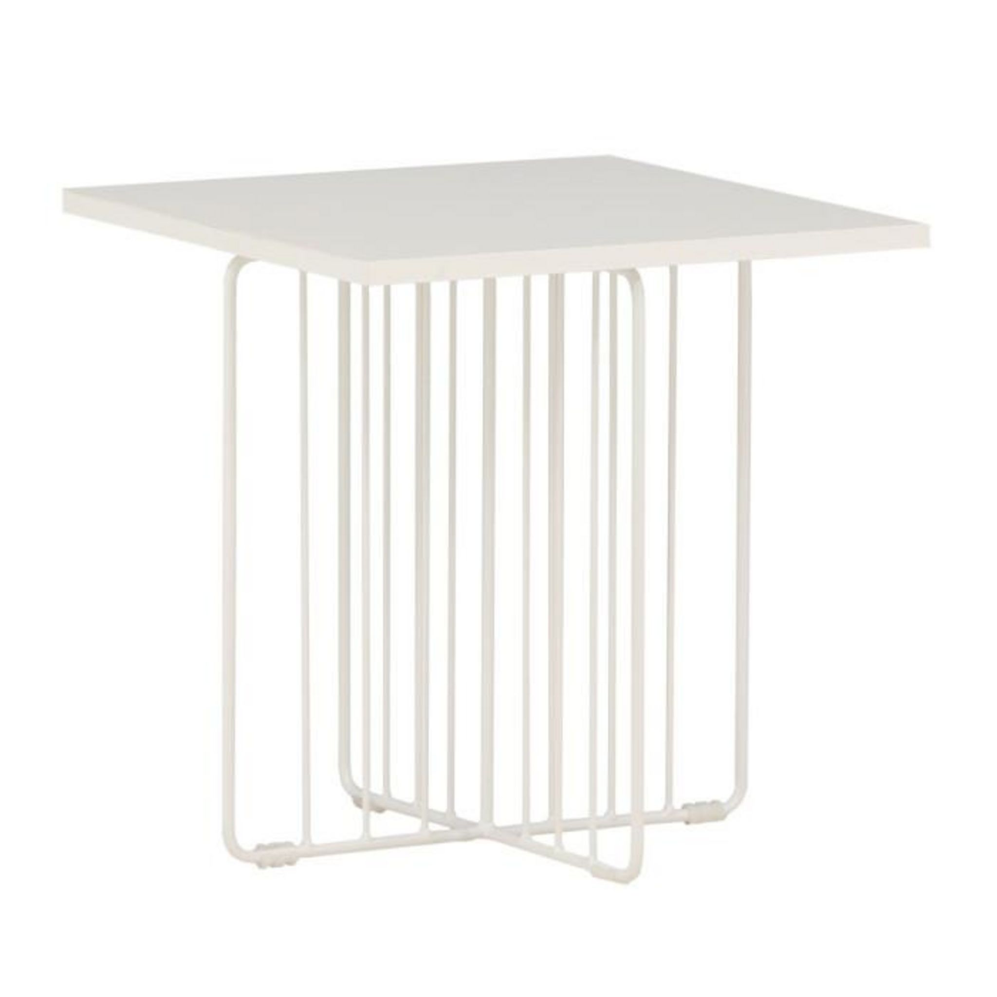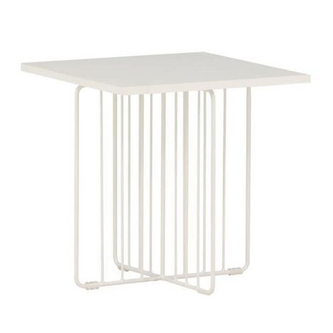 Informations Techniques : Dimensions : L. 40 x l. 40 x H. 40 cm Plateau : H. 1,5 cm Matières : Plateau : MDF Piètement : Acier Spécificités : Pratique & Tendance Table d'appoint design Base avec treillis décoratif Revêtement en poudre blanche Nombre de colis : 2 Poids : 3,8 kg Couleur : Blanc