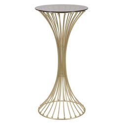 Informations Techniques : Dimensions : L. 50 x l. 50 x H. 103 cm Matières : Plateau : Verre Piètement : Métal Spécificités : Pratique & Déco Table d'appoint ronde Plateau en verre fumé Piètement design sablier Poids : 8,7 kg Couleur : Or