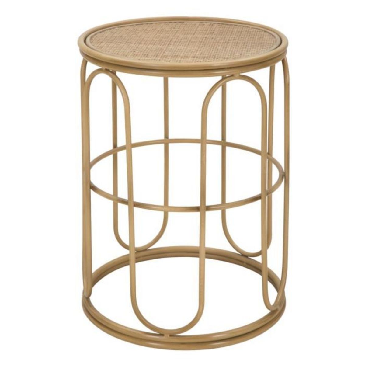 Informations Techniques : Dimensions : L. 40 x l. 40 x H. 55 cm Matières : Métal & Rotin Spécificités : Pratique & Tendance Table d'appoint ronde Plateau en rotin Piètement effet bambou Poids : 3,3 kg Couleur : Naturel