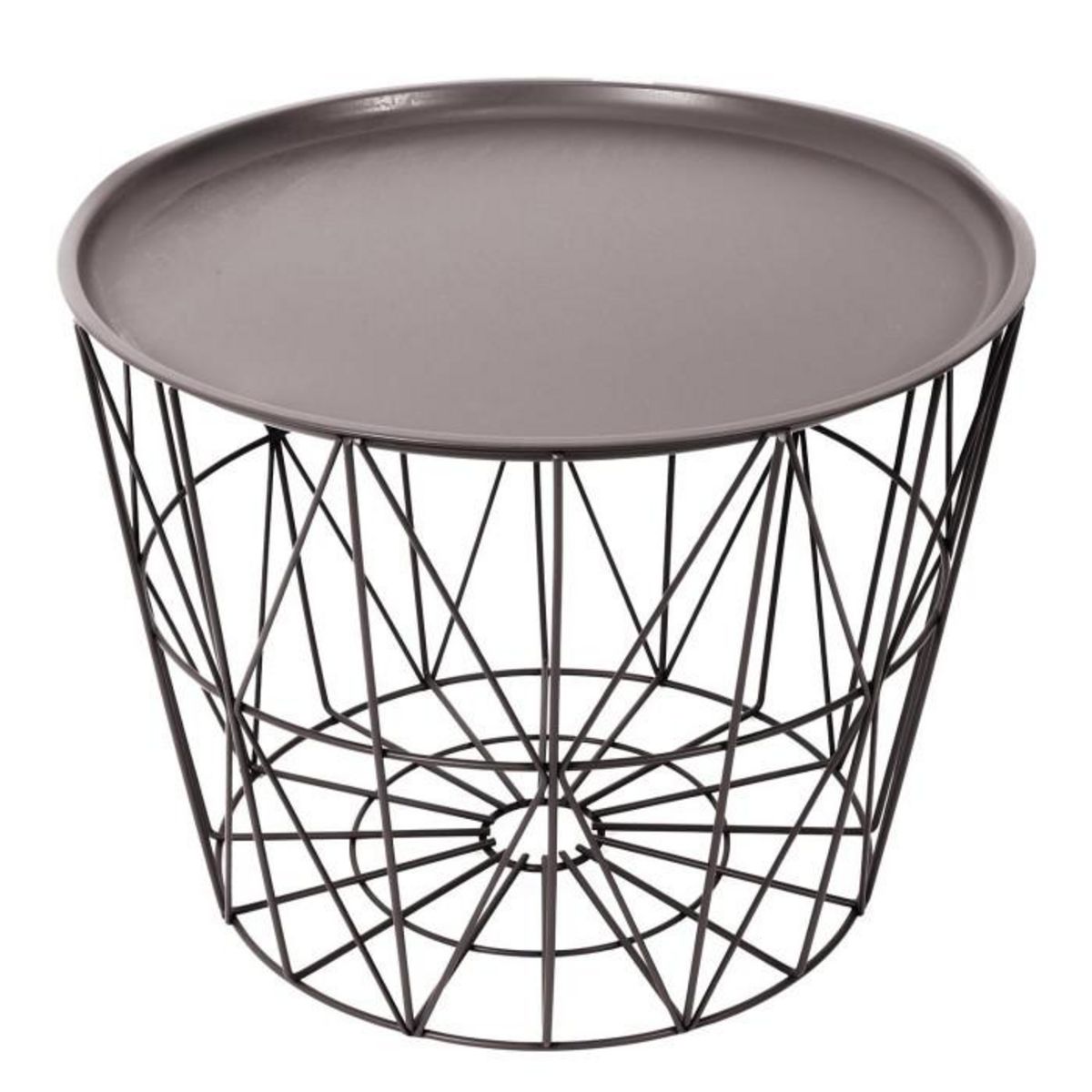 Informations Techniques : Dimensions : D. 52,5 x H. 40 cm Matières : Métal & Fer Spécificités : Pratique & Utile Table d'Appoint Forme Ronde Avec Couvercle Poids : 3,9 kg Couleur : Taupe
