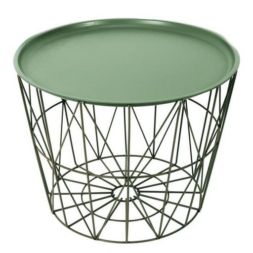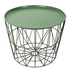 Informations Techniques : Dimensions : D. 52,5 x H. 40 cm Matières : Métal & Fer Spécificités : Pratique & Utile Table d'Appoint Forme Ronde Avec Couvercle Poids : 3,9 kg Couleur : Vert