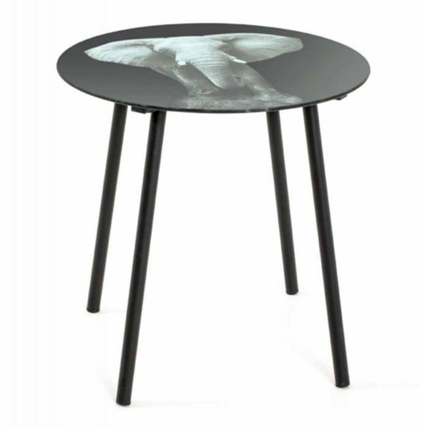Informations Techniques : Dimensions : D. 40 x H. 41 cm Matières : Acier & Verre trempé Spécificités : Tendance & Moderne Table d'Appoint design Structure en Acier Plateau en Verre trempé Forme Ronde Motif Éléphant Livré Démonté Facile d'Entretien & d'Utilisation Nombre de colis : 1 Poids : 2,43 kg