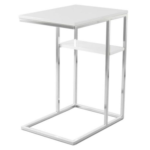 Table d'Appoint Design Maud 60cm Blanc & Argent