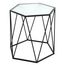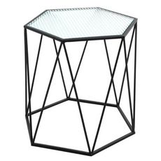 Informations Techniques : Dimensions : L. 46 x l. 40 x H. 46 cm Épaisseur du Verre : 5 mm Matières : Métal & Verre Trempé Spécificités : Pratique & Tendance Table d'Appoint Design Forme Hexagonale Effet Laqué Livré monté Nombre de colis : 1 Poids : 2,79 kg Couleur : Noir