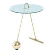 Informations Techniques : Dimensions : D. 46 x H. 60 cm Épaisseur du plateau : 8 mm Matières : Acier & Verre Spécificités : Tendance & Moderne Table d'Appoint design Plateau en Verre aspect Marbre Pieds Forme Pendule en Métal Forme Ronde Portable sur Châssis Surface Lisse Capacité de Charge Maximale