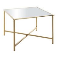 Informations Techniques : Dimensions : L. 60 x l. 60 x H. 45 cm Épaisseur du Miroir : 5 mm Matière : Métal & Verre Spécificités : Pratique & Tendance Table d'Appoint Design Forme Carrée Plateau en Miroir Effet Laqué Livré non monté Nombre de colis : 1 Poids : 5,94 kg Couleur : Or