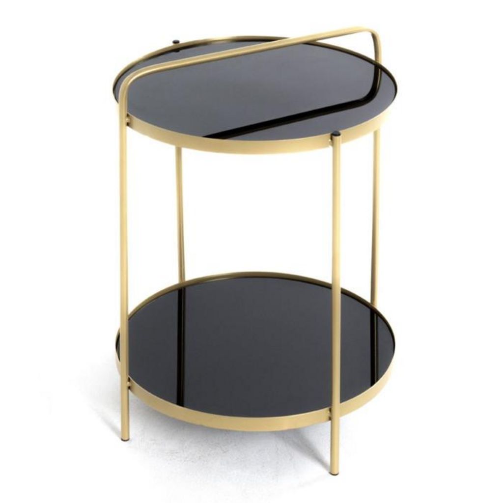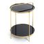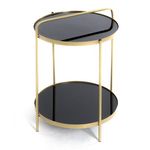 Informations Techniques : Dimensions : D. 38 x H. 51 cm Hauteur Intermédiaire : 36 cm Matières : Métal & Verre trempé (5 mm) Spécificités : Tendance & Design Table d'Appoint Forme Ronde Étagère en Verre trempé Effet Laqué Nombre de colis : 1 Poids : 3,69 kg Couleur : Or & Noir