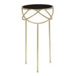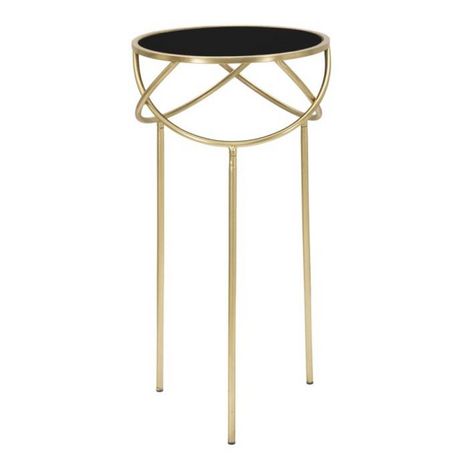 Informations Techniques : Dimensions : L. 40 x l. 40 x H. 80 cm Matières : Métal, Verre & MDF Spécificités : Pratique & Utile Table d'appoint Plateau en verre Design anneaux croisés Poids : 2,95 kg Couleur : Noir & Or