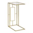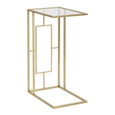 Informations Techniques : Dimensions : L. 40,5 x l. 25,5 x H. 60 cm Matières : Plateau : Verre Piètement : Métal Spécificités : Pratique & Design Table d'appoint bout de canapé Plateau en verre transparent Forme rectangulaire Poids : 2,4 kg Couleur : Or