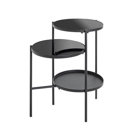 Informations Techniques : Dimensions : L. 56 x l. 39 x H. 71 cm Matières : Structure : Acier 2 plateaux supérieurs : Verre trempé 1 plateau inférieur : Métal Spécificités : Pratique & Utile Table d'appoint design Peinture finition laquée Poids : 5,58 kg Couleur : Noir