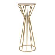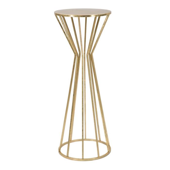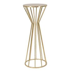 Informations Techniques : Dimensions : L. 38 x l. 38 x H. 100 cm Matière : Métal Spécificités : Pratique & Tendance Table d'appoint haute Pied style sablier ajouré Poids : 3,6 kg Couleur : Or