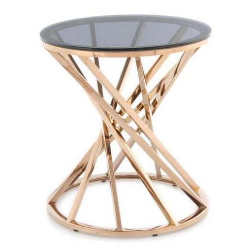 Table d'Appoint Design Wesley 42cm Gris & Or Rose