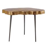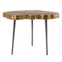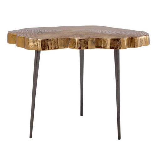 Informations Techniques : Dimensions : L. 65 x l. 56 x H. 50 cm Épaisseur plateau : 45 mm Matière : 100% Aluminium Spécificités : Pratique & Glamour Table d'Appoint Design Plateau Aspect Bois Look Rétro avec un caractère de luxe Surface facile à nettoyer Plateau Détaillé Capacité de Charge : 20 kg F